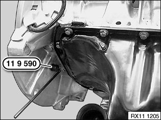 Lock flywheel with special tool 11 9 590.