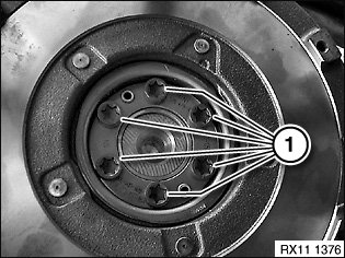 Flywheel with and without dual-mass: release flywheel bolts (1).
