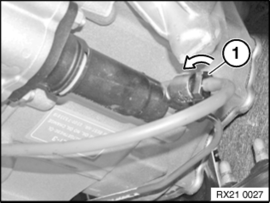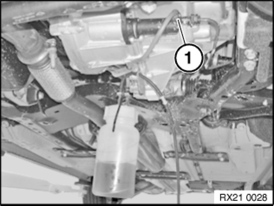 Open bleed valve (1) and flush until clear brake fluid emerges without air bubbles.