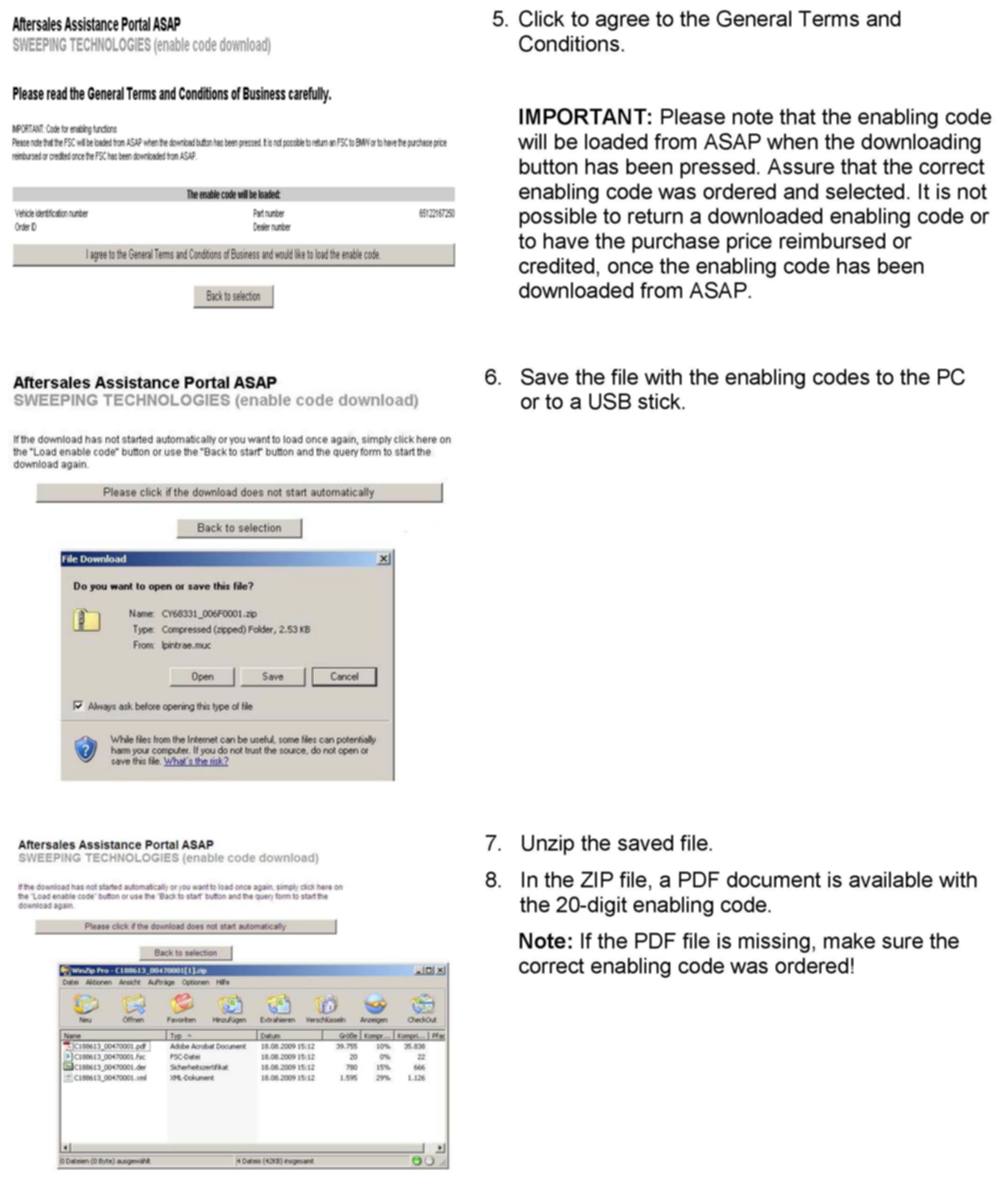 The delivery of the enabling code takes place in the After Sales Assistance Portal (ASAP).