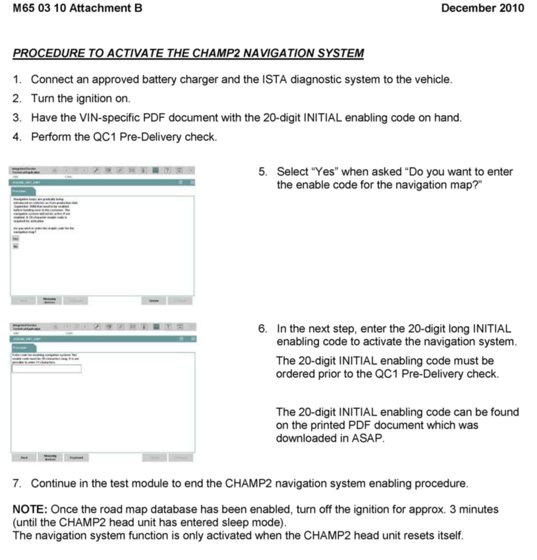 New vehicles come equipped with a navigation road map that must be enabled via an enabling code (FSC). This process is part of the new QC1 Pre-Delivery Check performed with the ISID (ISTA Diagnosis).