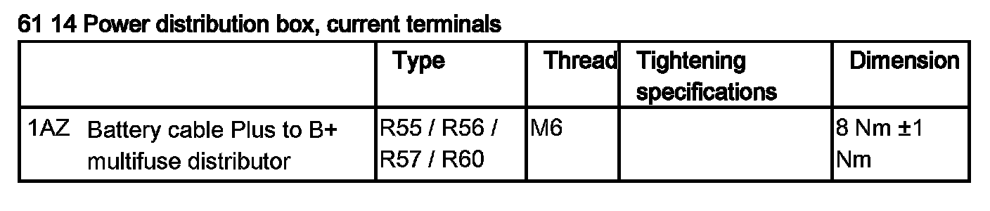 61 14 Power Distribution Box, Current Terminals