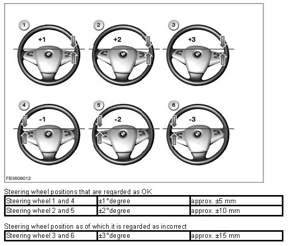 The main complaint in chassis adjustments is the steering wheel position. The difficulty is the driver's subjective perception of the steering wheel position when driving straight ahead. Observe here that the driver's perception of the actual horizontal position of the steering wheel can deviate. This deviation is mainly dependent on the design and installation tolerances of the dashboard, operating levers, etc.