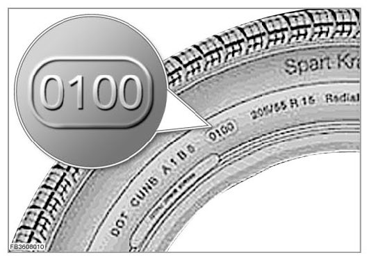 Tyres after calendar week 01 in the year 2000 have a four-digit DOT number. DOT number 0100 (see graphic) specifies that the tyres were manufactured in the 1st calendar week of 2000.