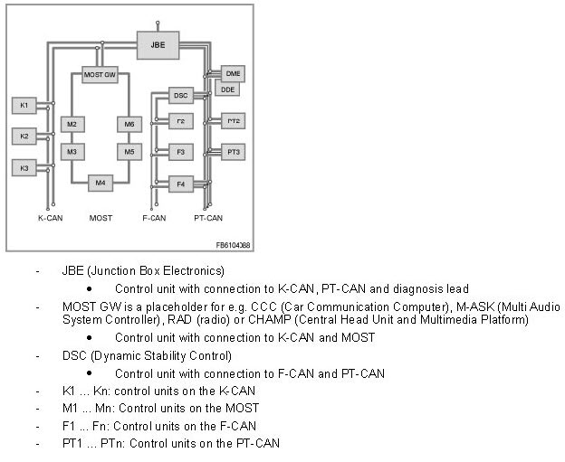 - MOST GW is a placeholder for e.g. CCC (Car Communication Computer), M-ASK (Multi Audio System Controller), RAD (radio) or CHAMP (Central Head Unit and Multimedia Platform)