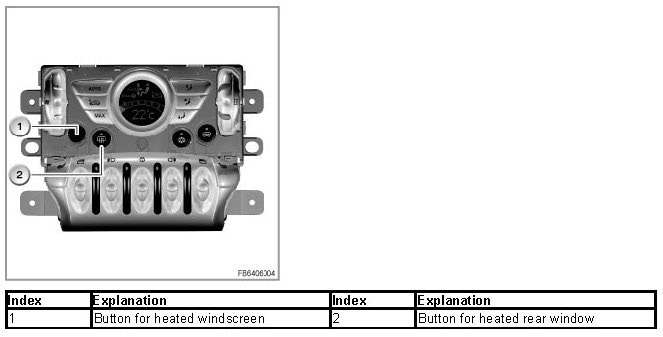 This functional description covers the heated windscreen and heated rear window.