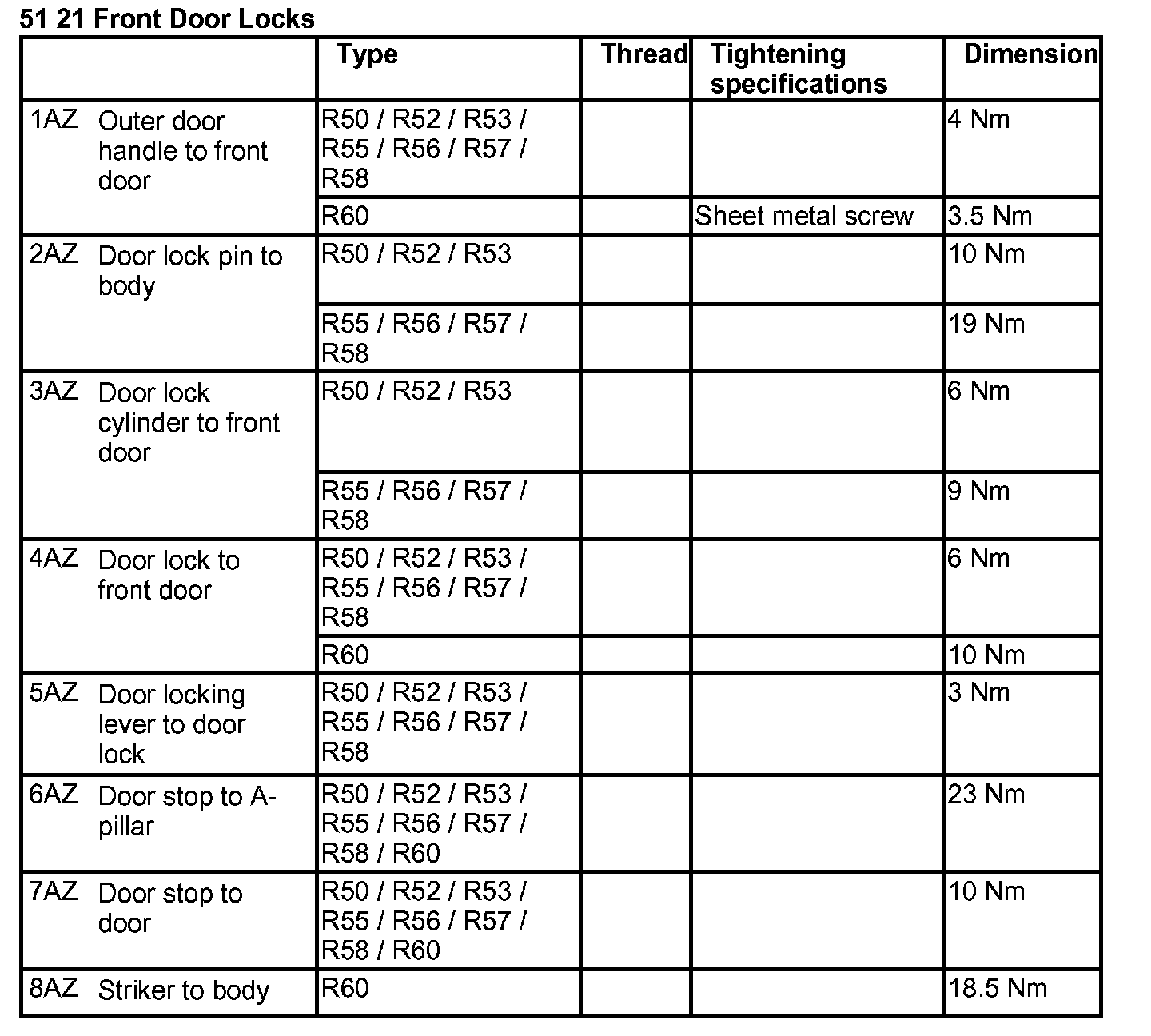 Door Locks: Specifications