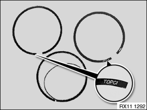 Piston rings with "TOP" identification must point to piston crown.