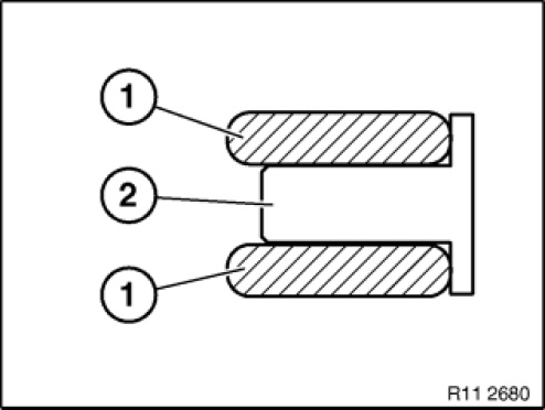 NOTE: The oil control ring comprises a steel band ring (1) and a support spring (2).