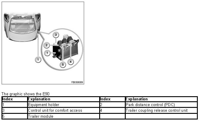 - The control unit for the trailer tow hitch release in the E9x with the associated electrical folding trailer tow hitch and
