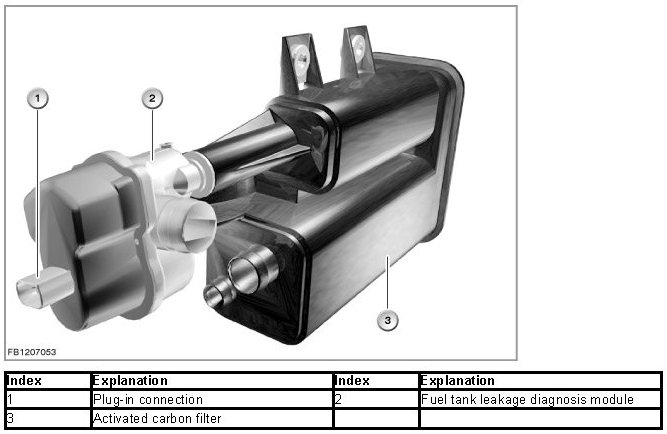 The fuel vapours are stored in the carbon canister and fed to the engine as a function of activation of the tank-venting valve (see also Tank ventilation).