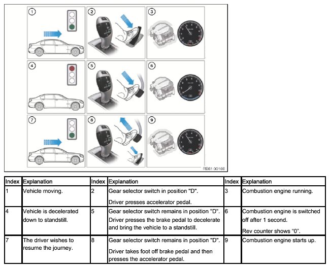 The automatic engine start-stop function will only stop or start the engine if certain prerequisites are met.