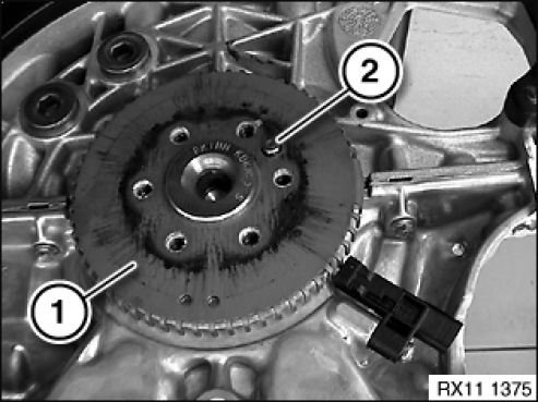 Reluctor ring (1) is loose on crankshaft and is only held in place when the flywheel is fitted.