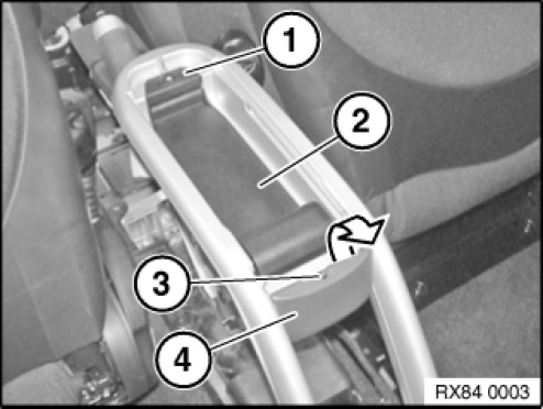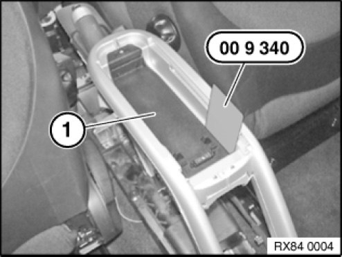 Disengage eject box (1) on both sides of centre armrest using special tools 00 9 340.