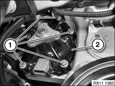 Remove coolant pump (2) downwards.