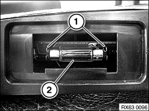 Spread bow contacts (1) and remove festoon bulb (2).