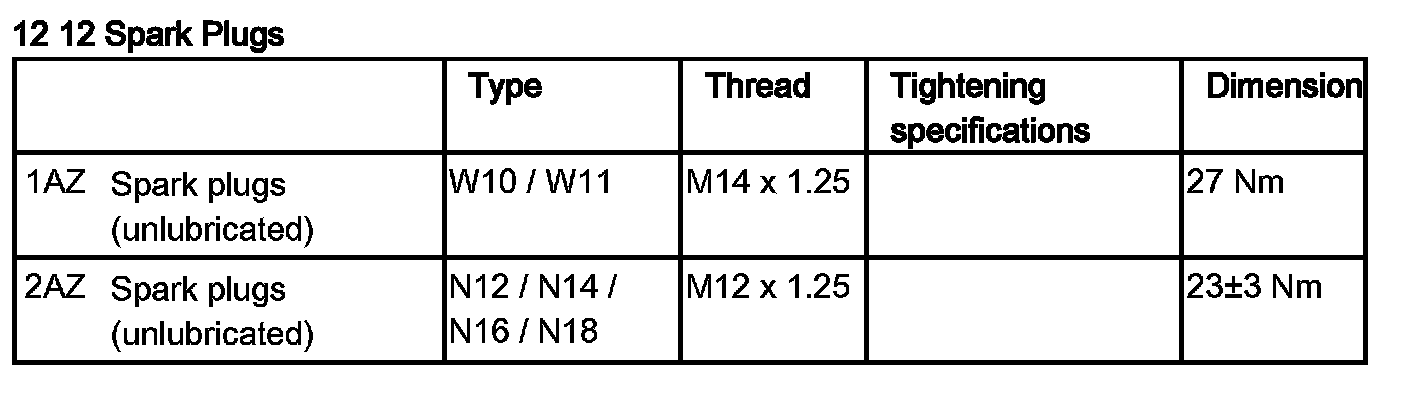 Tightening torque 12 12 2AZ.