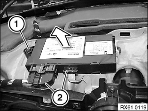 Disconnect plug connections (2) and remove control unit for Car Access System.