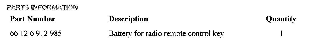 PARTS INFORMATION