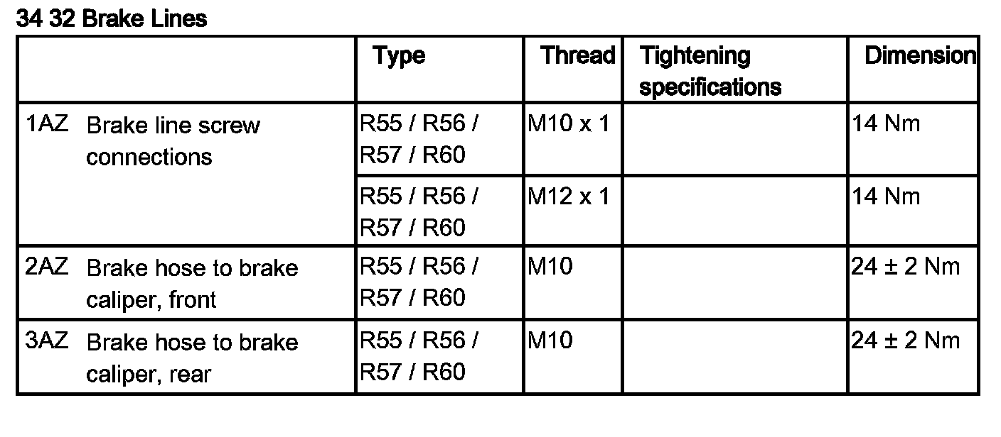 Tightening torque, 34 32 1AZ.
