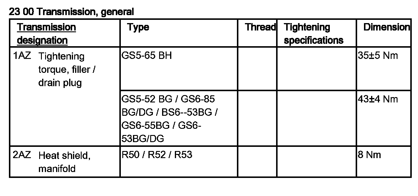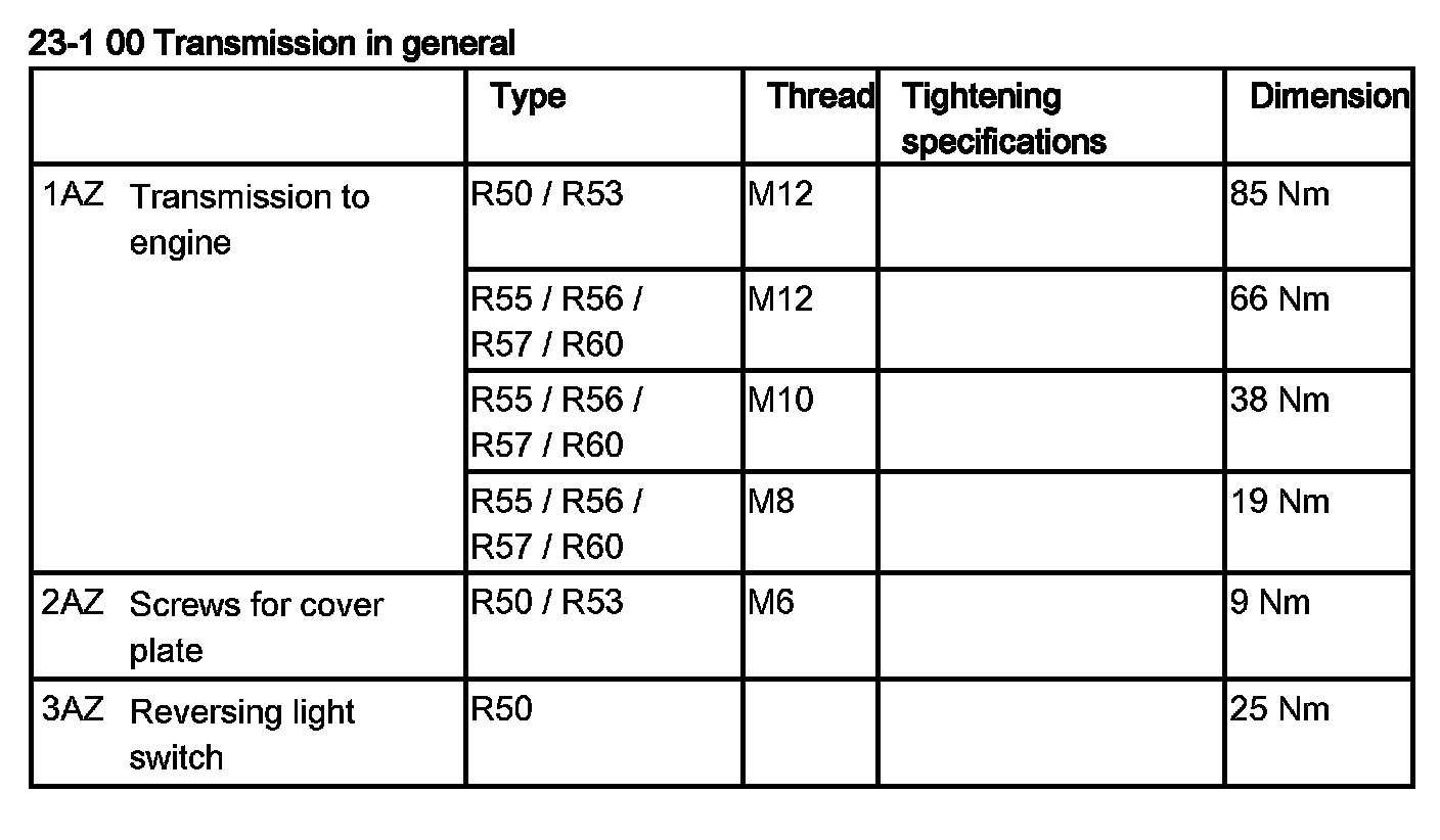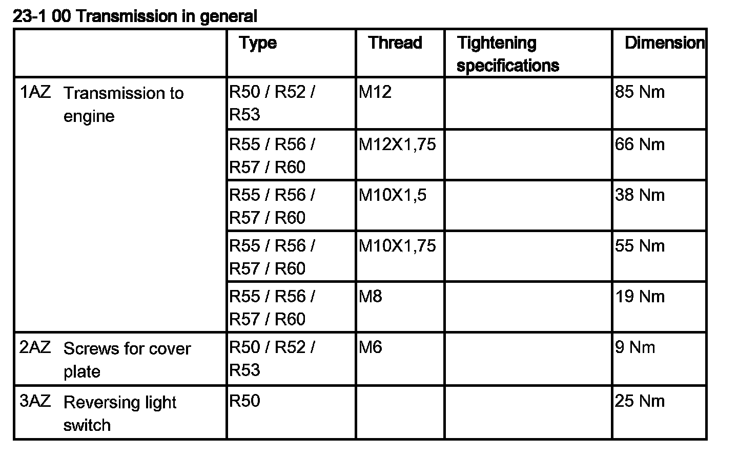 Tightening torque 23 00 1AZ.
