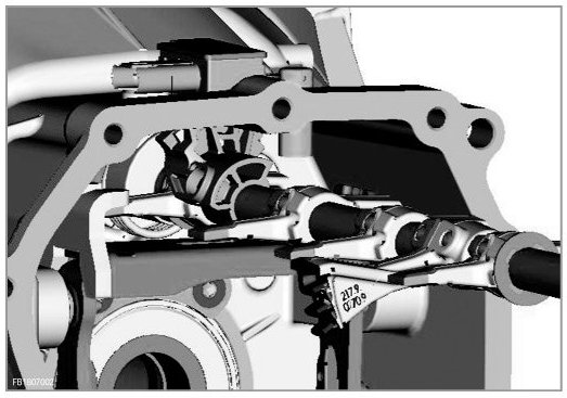 On vehicles with manual gearboxes, the zero gear sensor is fitted on the transmission case. The zero gear sensor is a PLCD sensor, which means the sensor detects a linear change in the location (excursion) without contact on the basis of position changes with regard to the magnetic state. The gearshift operation shifts the selector rod (4) and thus the magnet in the gearbox. The PLCD sensor enables the engine management system to detect the position of the gear-stick. The following illustrations show the schema of the assembly and sectional views of the sensor attached to the gearbox:
