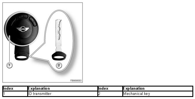 NOTICE: Mechanical ignition key integrated in ID transmitter.