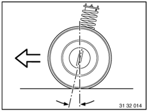 Is the inclination of the kingpin in the direction of travel viewed from the side. The line through the centre point of the spring strut support bearing and the control arm ball joint corresponds to the "kingpin".