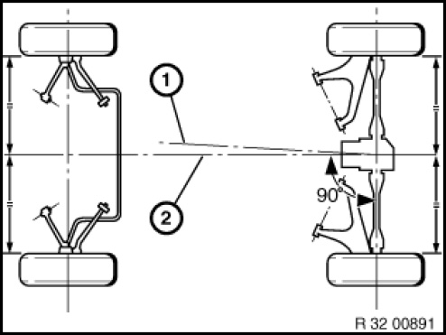 A correctly adjusted toe angle difference produces equal values for left and right lock with consideration of factory tolerances.