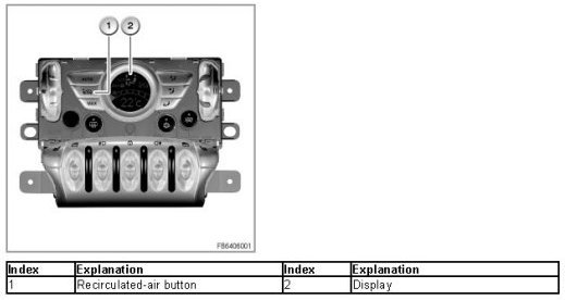 To ensure adequate fresh-air supply, the recirculated air mode has a time limit (30 min recirculated air mode - 30 s partial fresh-air mode - 30 min recirculated air mode - etc.).