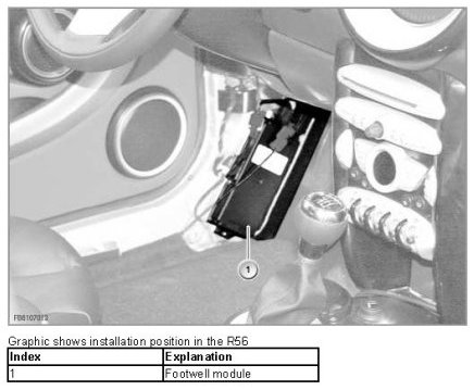 The footwell module is located in the footwell on the driver's side. The footwell module and the junction box electronics control the power windows drives.