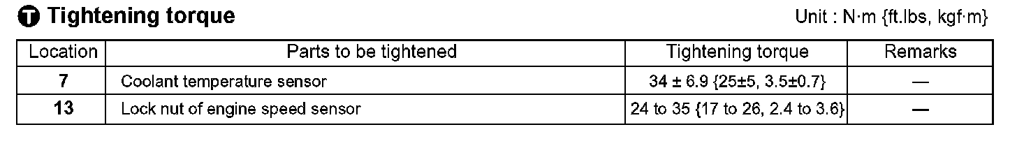 CAUTION: Be sure to check the tightening torque of engine speed sensor 13. If the tightening torque is insufficient, the sensor may not output a signal.