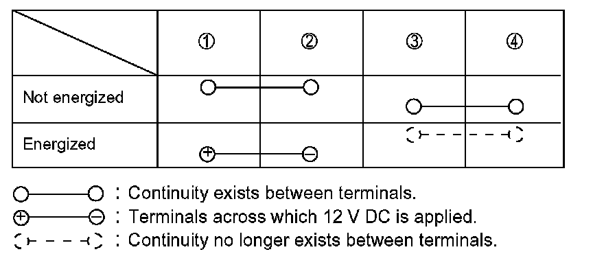 [3] [4] Inspection of pre-stroke cut relay and exhaust brake cut relay (normally-closed type with 4-pin connector)