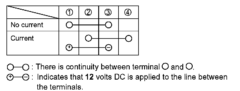 - Apply 12 volts DC between terminals (1) and (2).