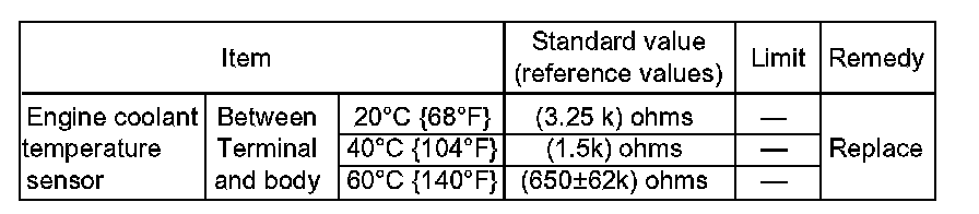 - If the measurements are out of specification, replace the engine water temperature sensor.