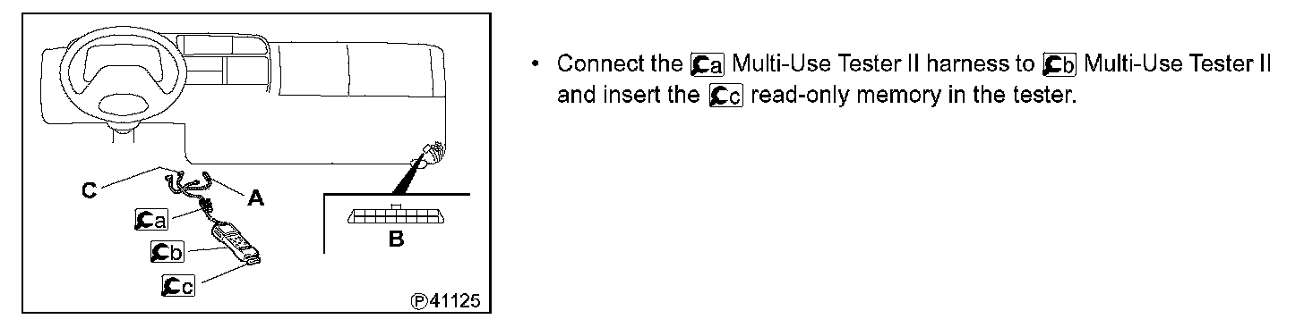 - Connect the Multi-Use Tester II connector C (16 pins) to the data link connector B (16 pins).