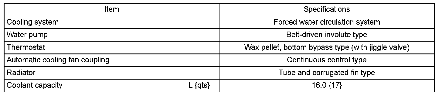 Cooling System: Specifications