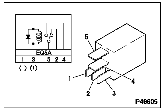 - Perform a continuity check and an operation check. If there is any abnormality, replace the relay.