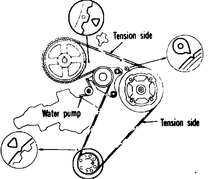 Fig. 8 Timing belt installation & sprocket timing mark alignment: