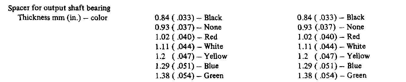 KM144/145 M/T, Spacer Thickness For Output Shaft Bearing: