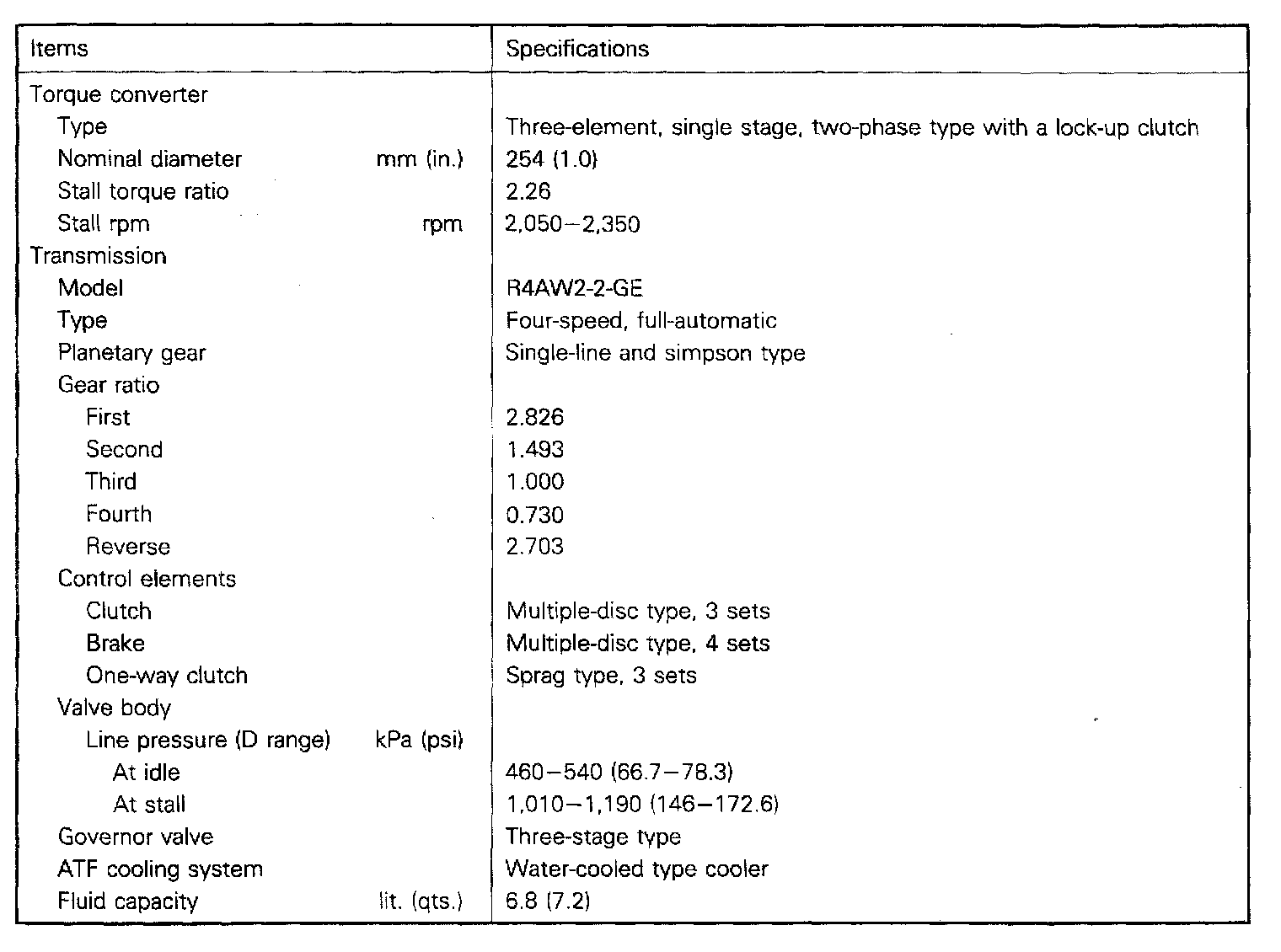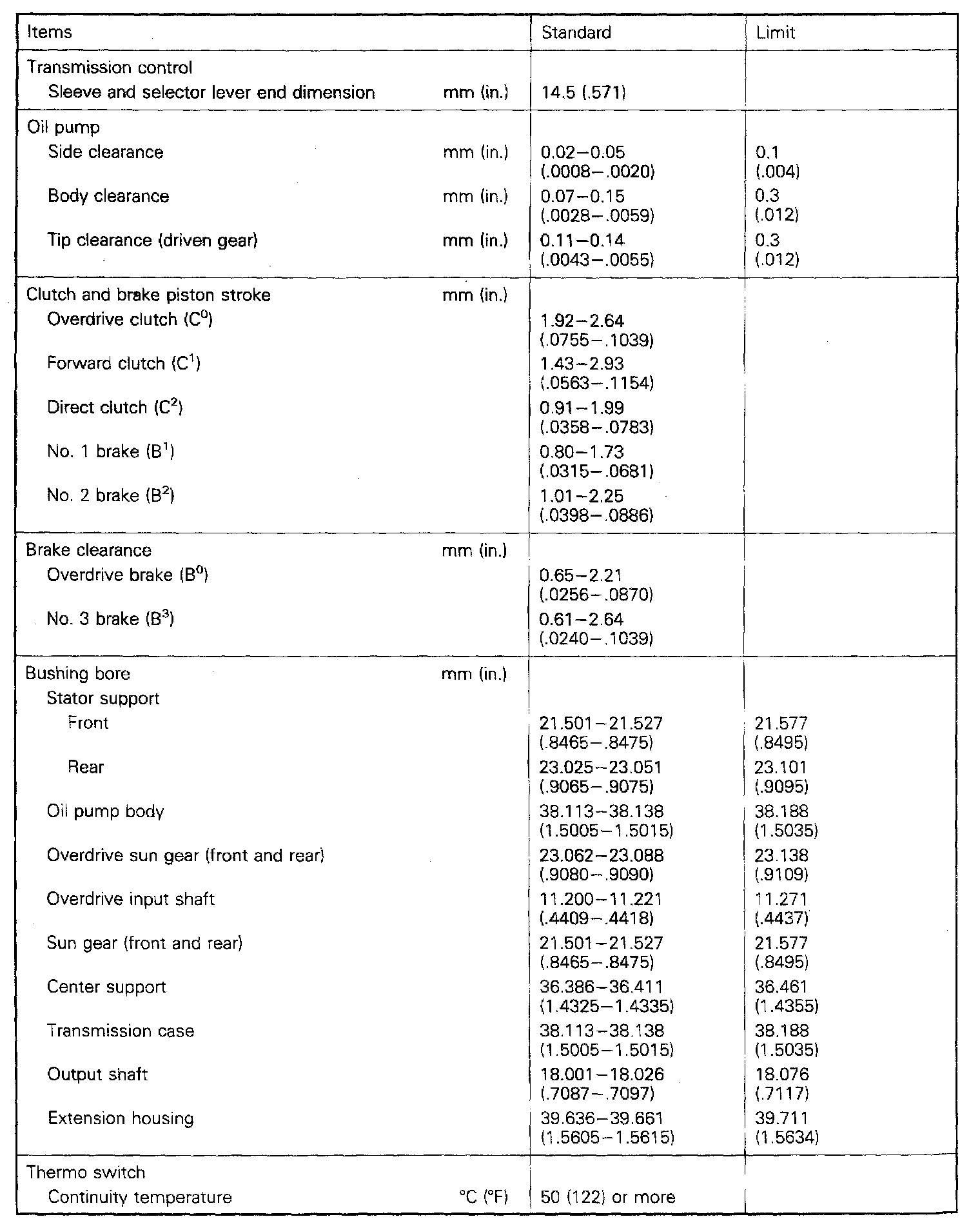 R4AW2 4-spd A/T, Transmission Standard Values & Limits: