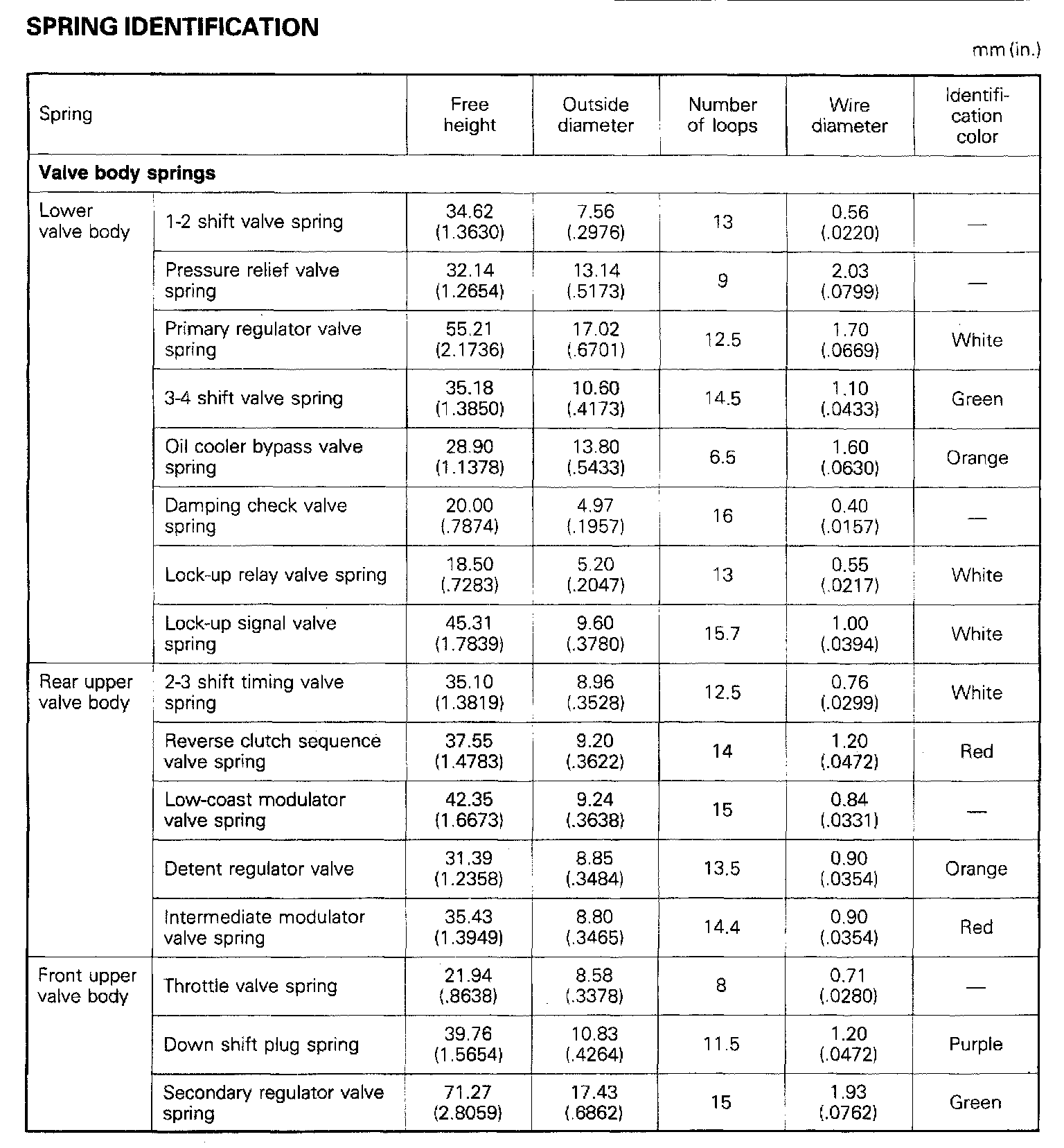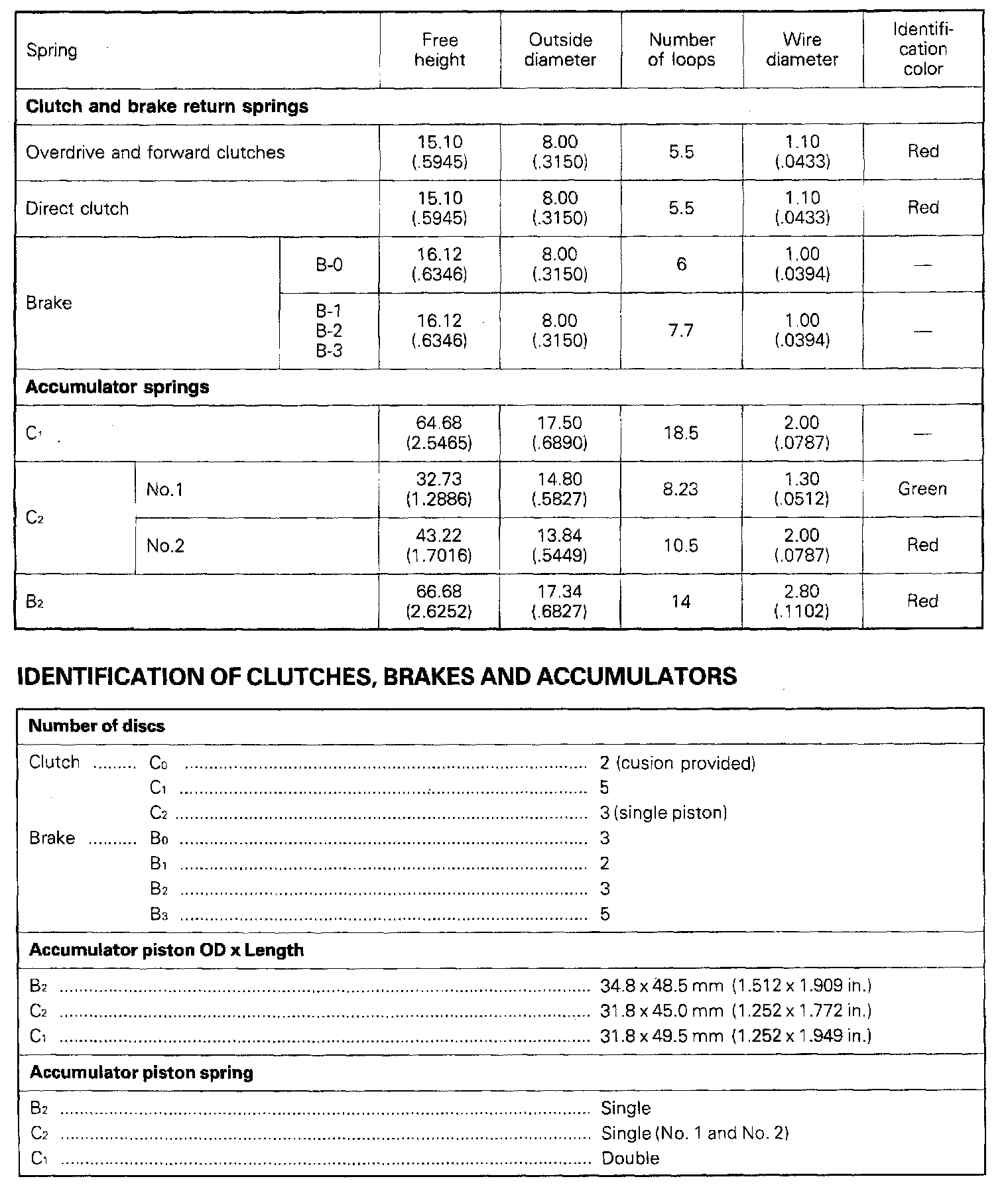 R4AW2 4-spd A/T, Clutch & Accumulator Springs / Dimensions: