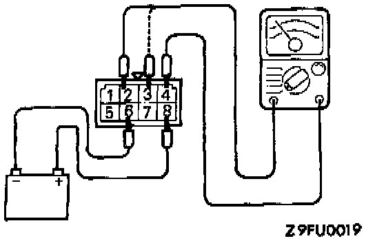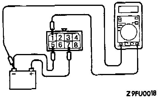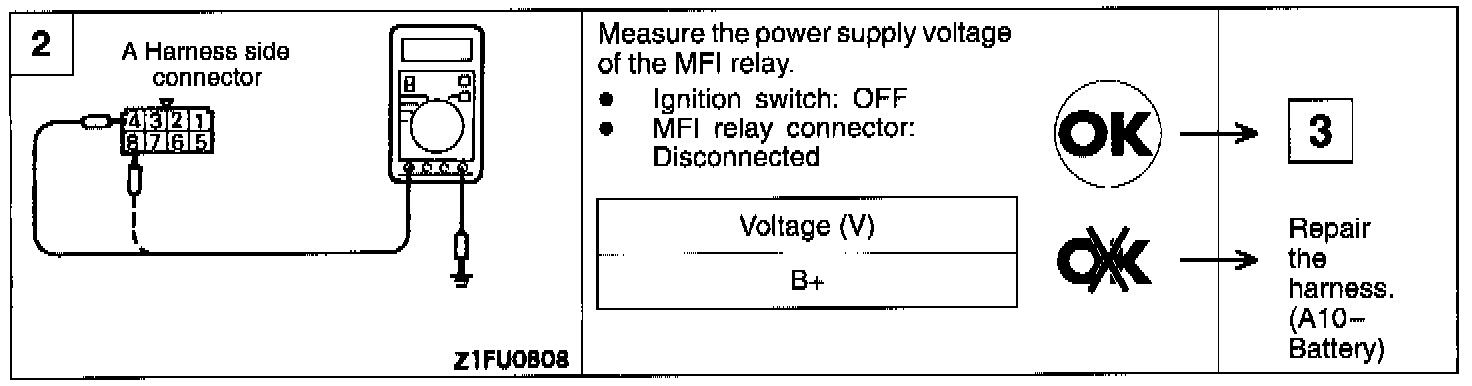 1. Remove the Multiport Fuel Injection (MFI) relay and check for continuity between the MFI relay terminals.