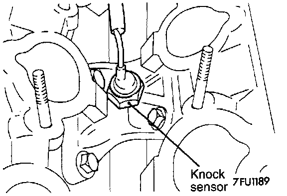The knock sensor converts cylinder block vibrations due to knocking into voltage according to the strength of the vibrations and inputs it to the engine control module. The engine control module controls the delay in spark timing according to this signal.