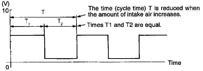 Unstable wave pattern with non-uniform frequency. However, when an ignition leak occurs during acceleration, the wave pattern will be distorted temporarily, even it the volume air flow sensor is normal.
