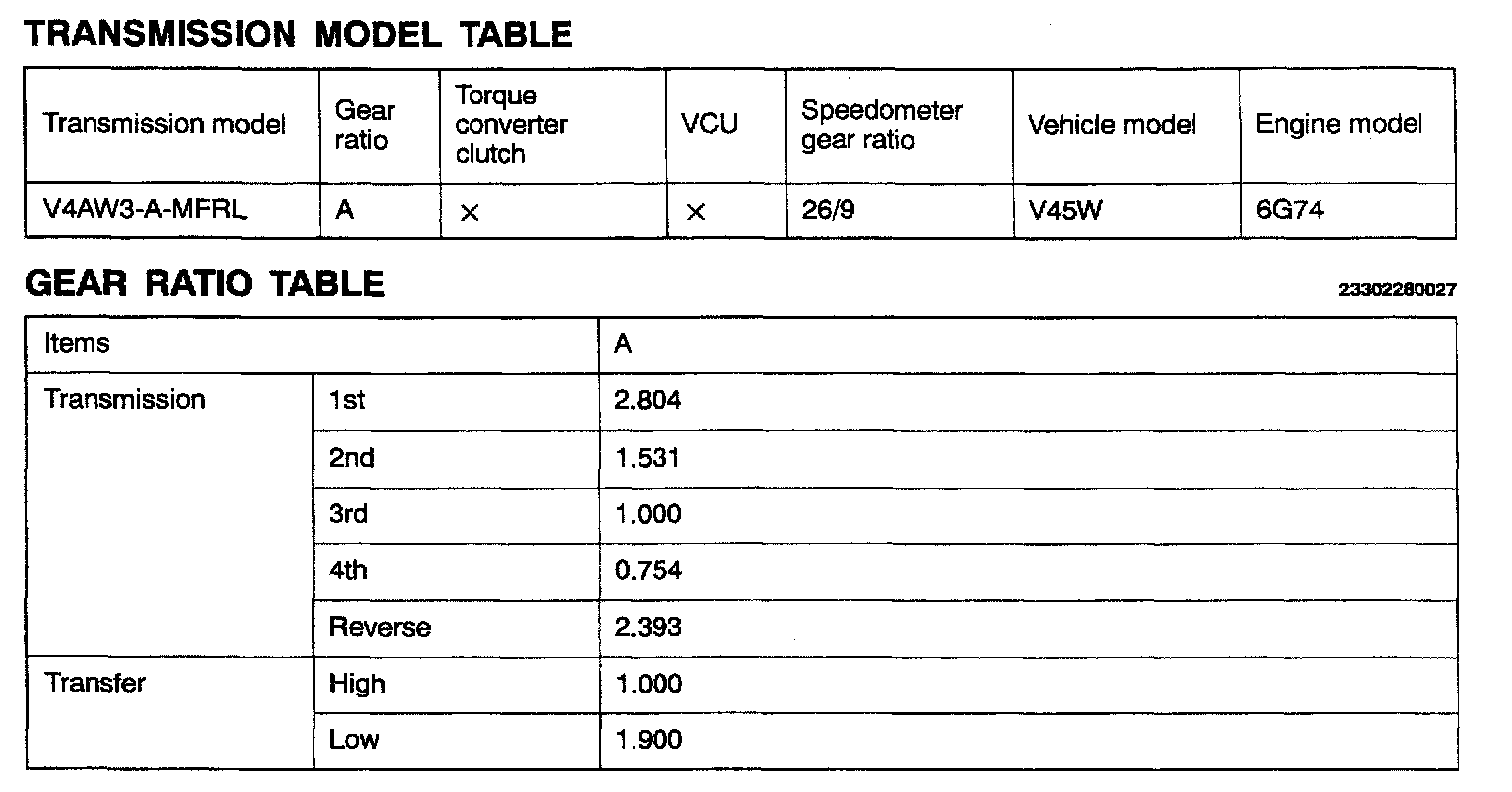 V4AW3 4-spd A/T, Gear Ratios:
