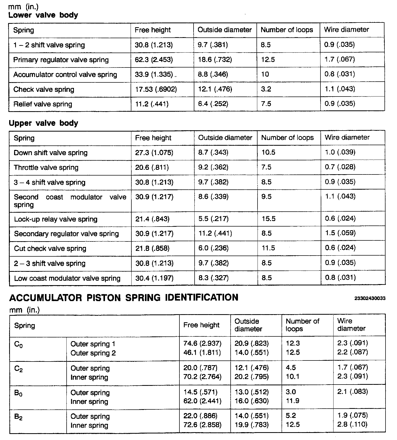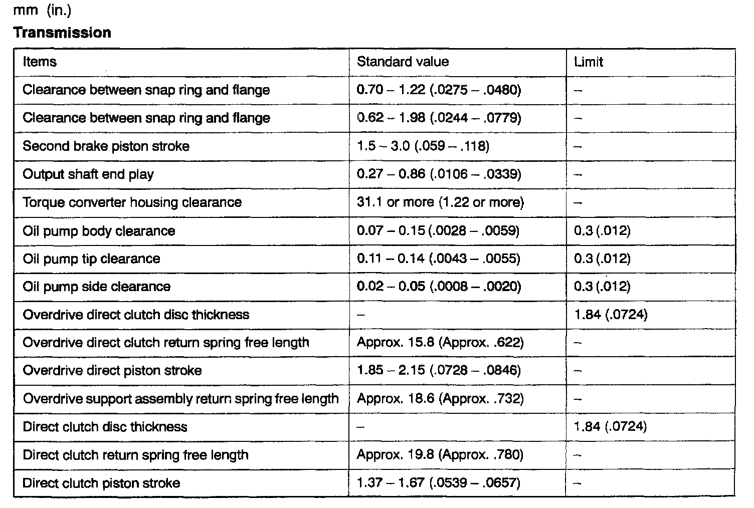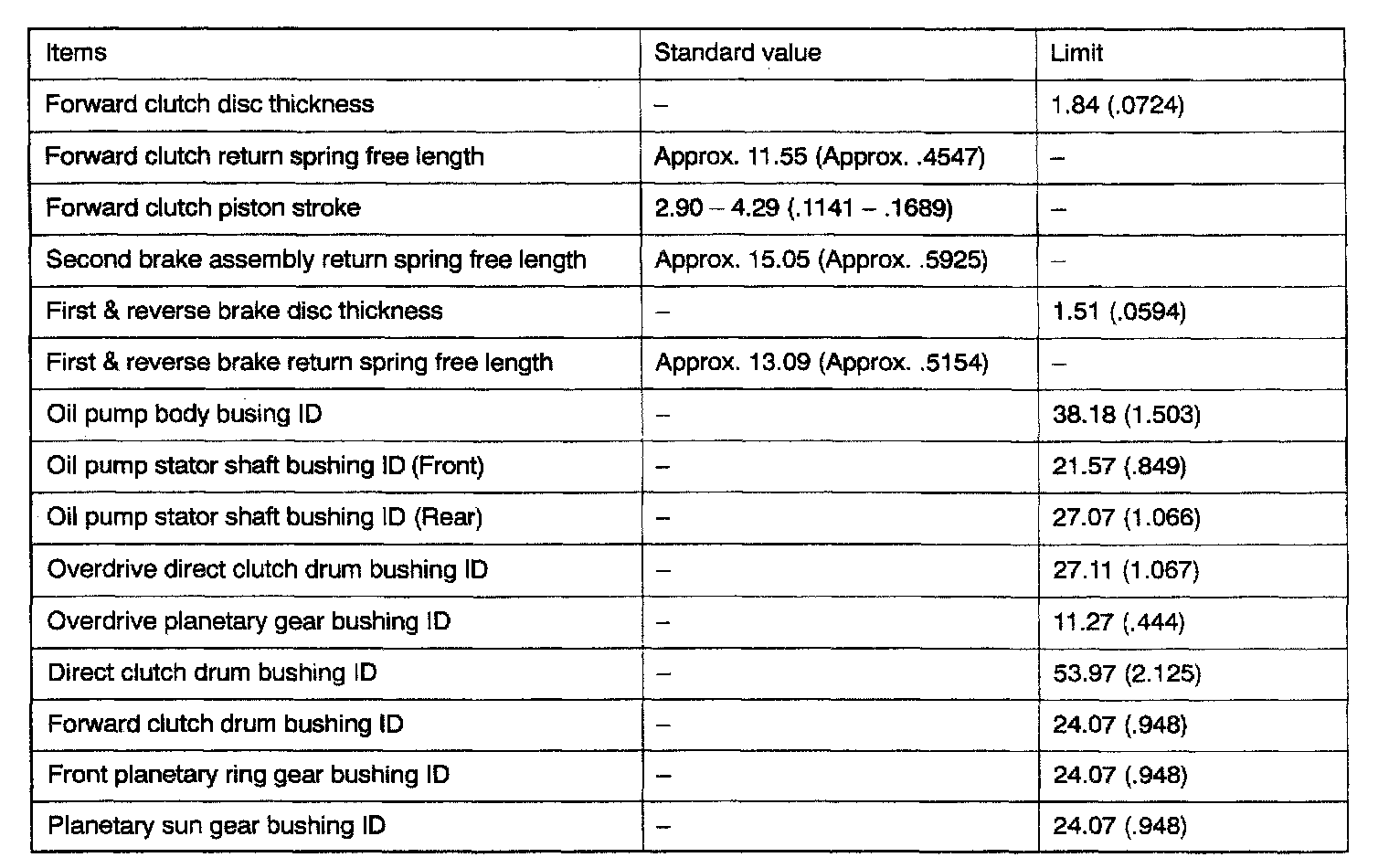 V4AW3 4-spd A/T, Transmission Standard Values & Limits: