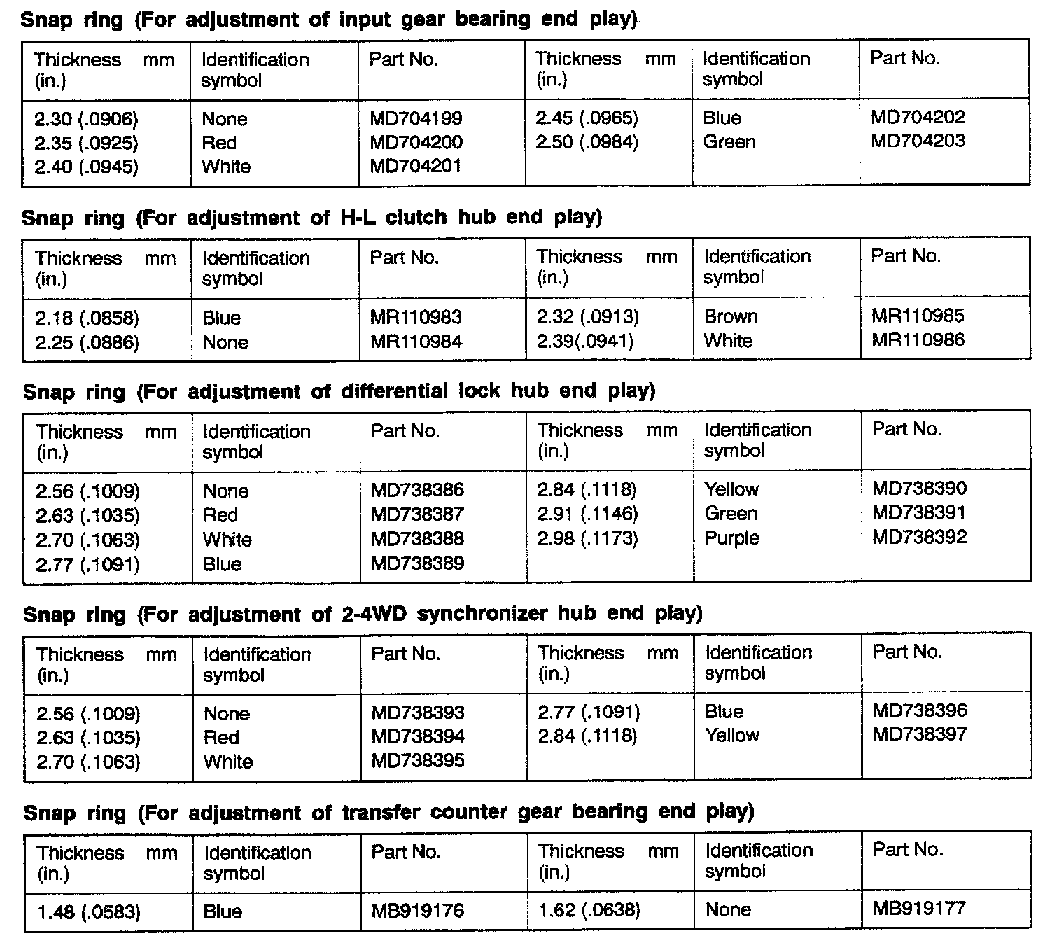 V4AW3 4-spd A/T, Transmission End Play: