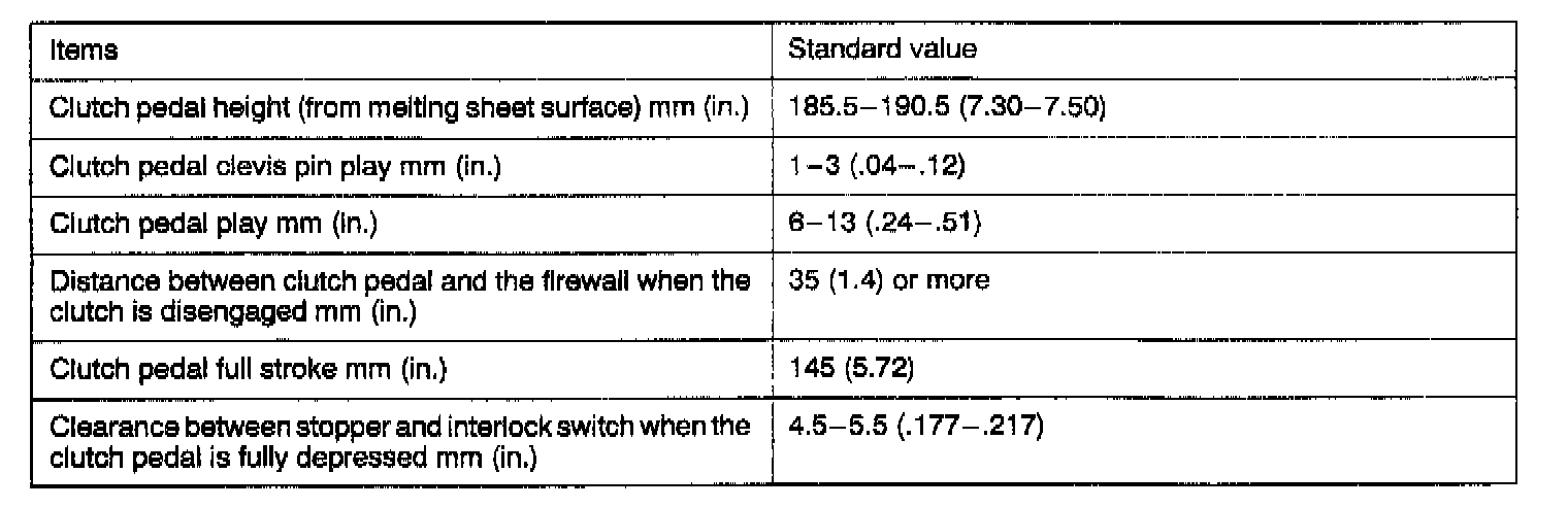 V5M31 5-spd M/T, Clutch Standard Values:
