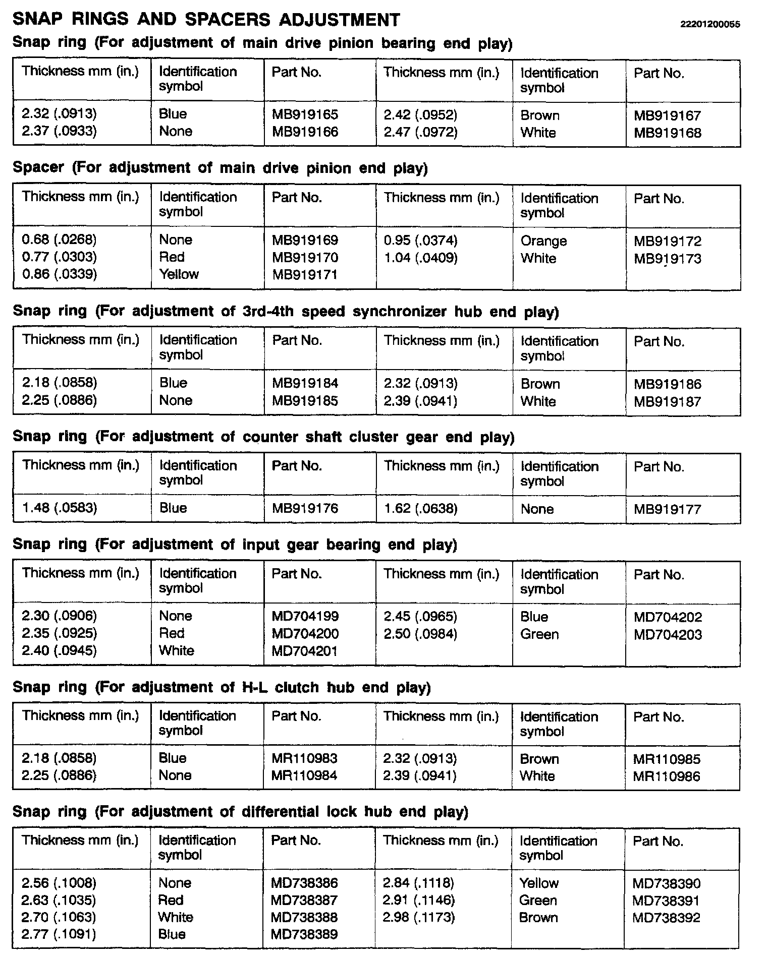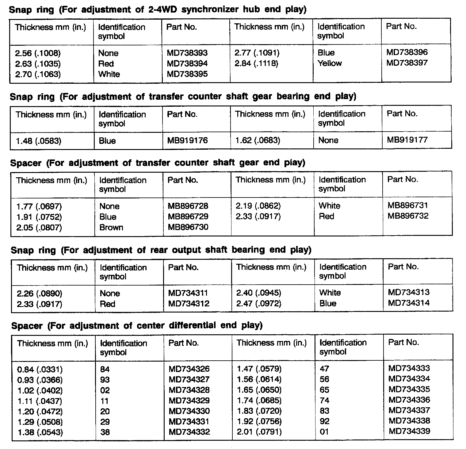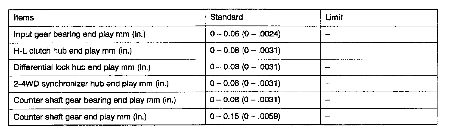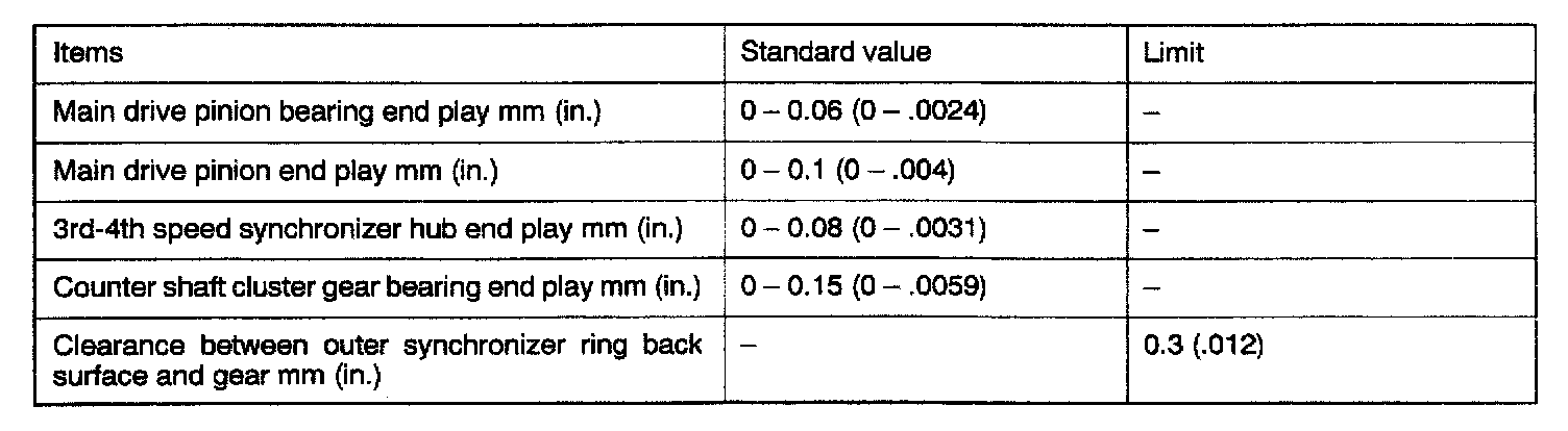 V5M31 5-spd M/T, Synchronizer, Counter Shaft & Differential End Play: